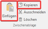 2. Klicken Sie auf Kopieren in die Zwischenablage in der Multifunktionsleiste um das Quellelement, das Sie kopieren möchten zu speichern.
