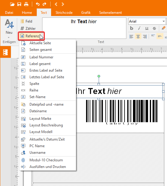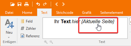 - Zeile: Layoutzeile, auf der das Etikett steht (diese Referenz ist für Seitenelemente nicht verfügbar).