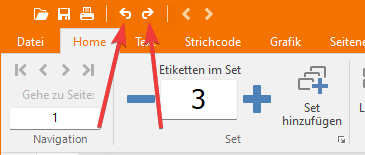 Die folgenden 2 Schaltflächen führen das Rückgängigmachen / Wiederherstellen von Bearbeitungsschritten durch.