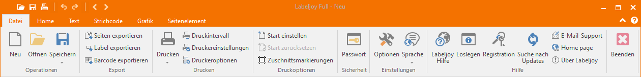 - Über - Zeigt das Informationsfenster von Labeljoy an.