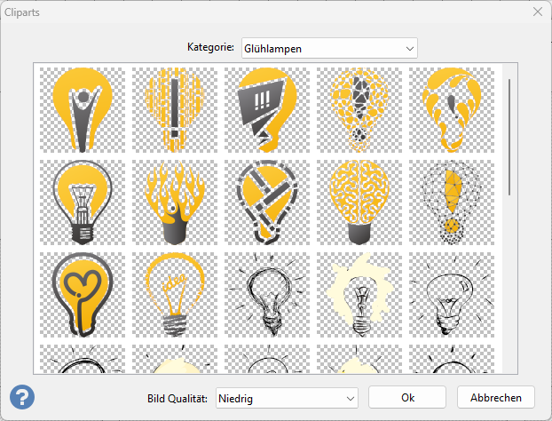 Die Clipart-Bibliothek ist nur in der Full und Basic-Version sowie im Testmodus verfügbar.