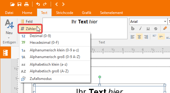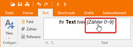 Der verkettete Text kann mehr als einen Zähler enthalten. Jede Zählerinstanz hat ihren eigenen eindeutigen Anfang, Schritt, Anzahl der Ziffern und ihr Format ist völlig unabhängig von allen anderen Zählern, die im Text enthalten sind. |
