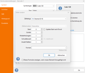 Mit Inkrementalzählern können Sie Hunderte von Barcodes drucken, ohne jeden Code einzeln eingeben zu müssen: Labeljoy generiert den Zähler gemäß Ihren Anweisungen. Zählertyp (dezimal, alphanumerisch, hexadezimal), Schritt (der Wert, um den der Zähler erhöht wird), Anzahl der möglichen Wiederholungen: Das sind einige der Funktionen, die Sie ganz einfach anpassen können.