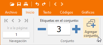 Sin importar el método elegido, el nuevo conjunto iniciará en la primera posición disponible de etiqueta y consistirá inicialmente de tantas etiquetas como columnas existan en la hoja según lo definido en el layout actual. Por ejemplo, si el layout actual posee 3 columnas, el nuevo conjunto poseerá el número de Copias inicial igual a 3.