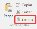 • Usando el botón Eliminar: Busque el botón Eliminar en la barra, en el grupo Portapapeles. Ahora presione el botón Eliminar.