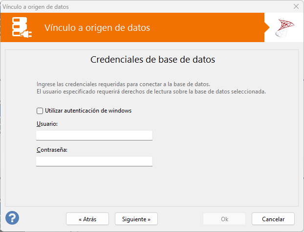 Este paso requiere que usted ingrese las credenciales de ingreso a la base de datos.