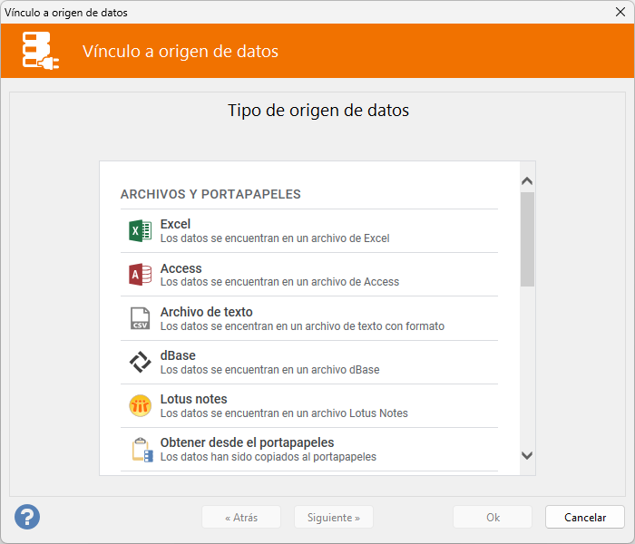 Labeljoy le permite conectarse a las siguientes fuentes de datos: