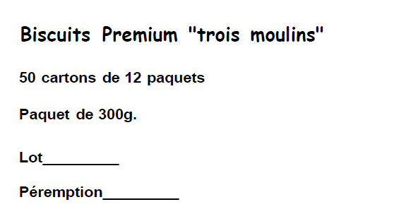 Supposons qu’une palette contienne 50 boîtes, chacune contenant 12 paquets de biscuits.