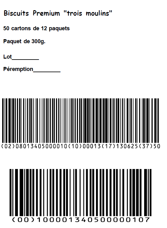 • GTIN AI (02): Identifie chaque boîte de biscuits.