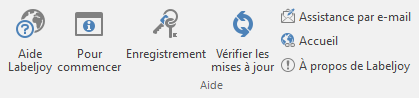 • À propos : ouvre la boite de dialogue À propos qui affiche les informations de la version de Labeljoy.