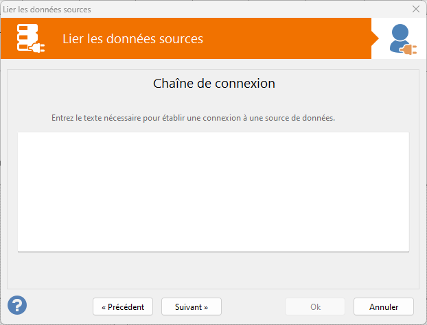 Cette étape, dédiée aux experts, vous permet de spécifier manuellement une chaîne de connexion pour les données auxquelles vous souhaitez vous connecter.