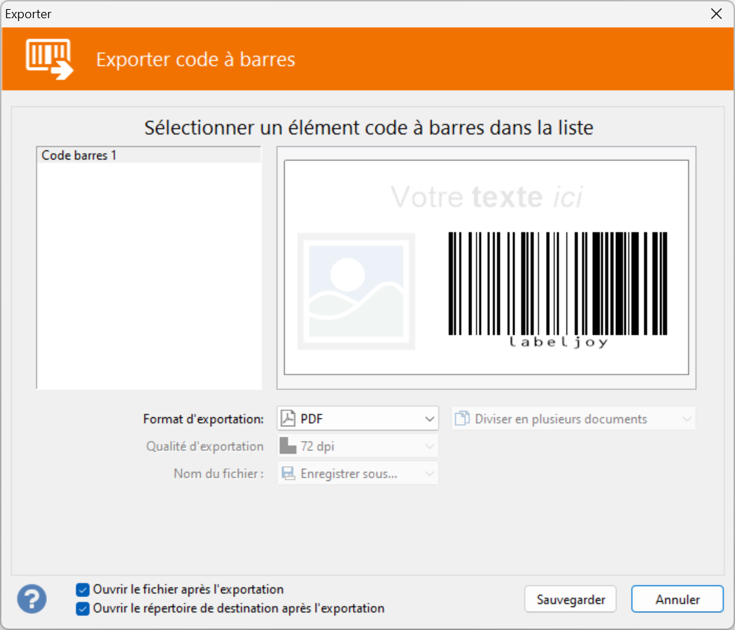 Exporter code à barres