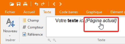 Dans les éléments de type Texte et Elément de Page, vous pouvez concaténer le texte avec une ou plusieurs références: