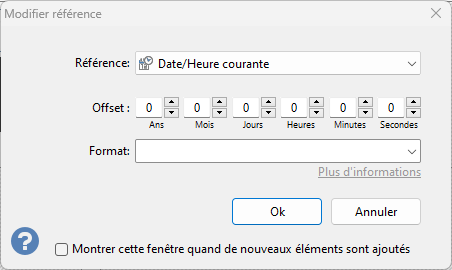 L'option Montrer cette fenêtre quand de nouveaux éléments sont ajoutés, si activée, fera automatiquement apparaître cette fenêtre juste après l'ajout d'une nouvelle référence au texte.