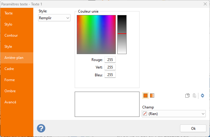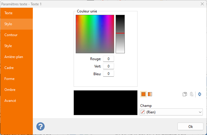 Stylo : définition de la couleur utilisée pour remplir l'élément de texte.