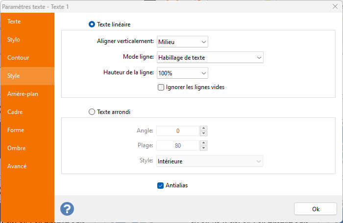 Paramètres du texte