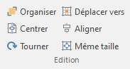 Pendant la phase d'édition, il est souvent nécessaire de positionner les éléments par rapport à la taille et à la position des autres éléments. Le groupe Edition sur le ruban permet d'accéder à une série de fonctions qui vous permettent de déplacer et de redimensionner des éléments rapidement et automatiquement.