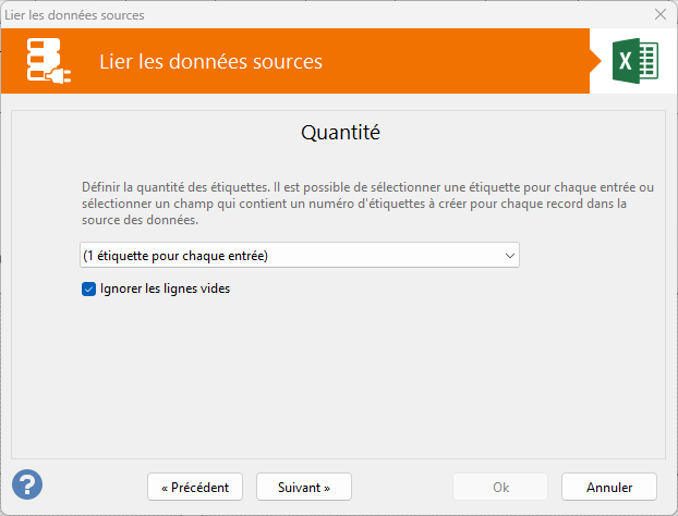 Laissez le paramètre par défaut 1 étiquette par enregistrement pour créer une seule étiquette pour chaque enregistrement unique trouvé dans la source de données.