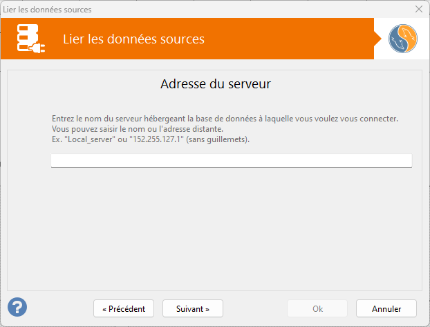 Cette étape vous demande de saisir l'adresse réseau du serveur de base de données où résident les données auxquelles vous souhaitez vous connecter.