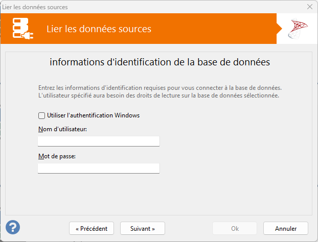 Pour les connexions Microsoft SQL Server, il est également possible d'activer l'authentification Windows, qui permet à l'utilisateur de se connecter au serveur à l'aide des informations d'identification Windows.