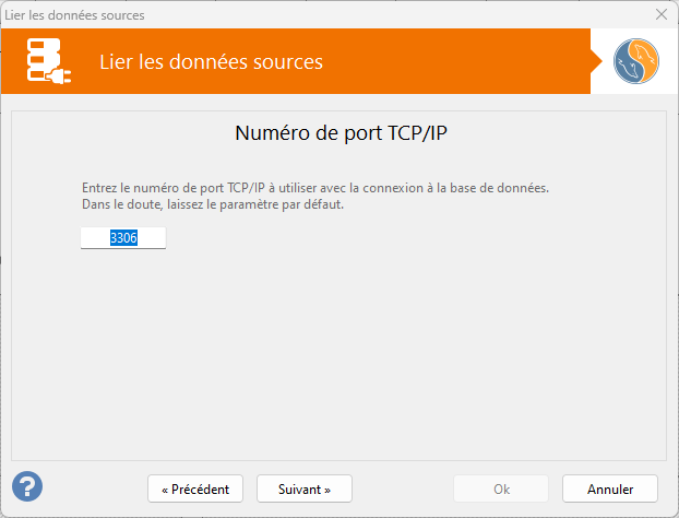 Si vous avez choisi MySql comme source de données, cette étape vous demande de définir le port de communication TCP / IP utilisé par le serveur pour accepter les connexions entrantes à la base de données.