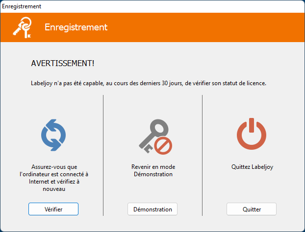 Une fois que Labeljoy a été acheté et activé, il a besoin d'une connexion Internet pour maintenir actives les données d'activation.