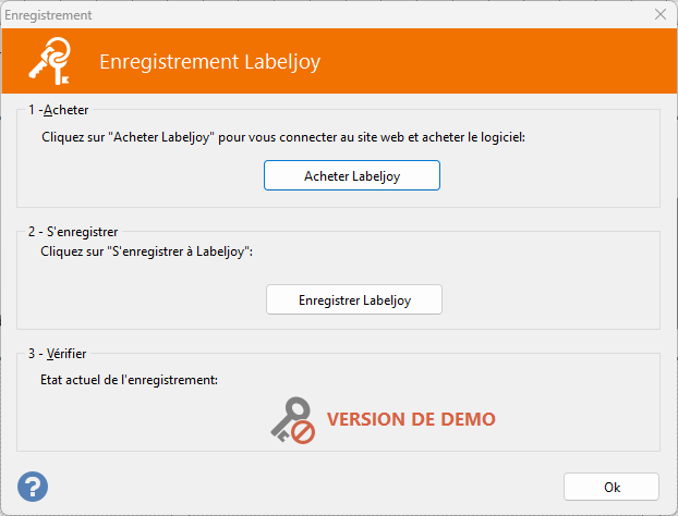 Tant qu'aucun code d'activation valide n'est fourni, Labeljoy fonctionnera en mode d'essai.