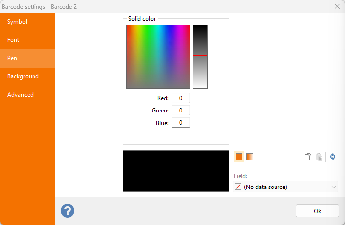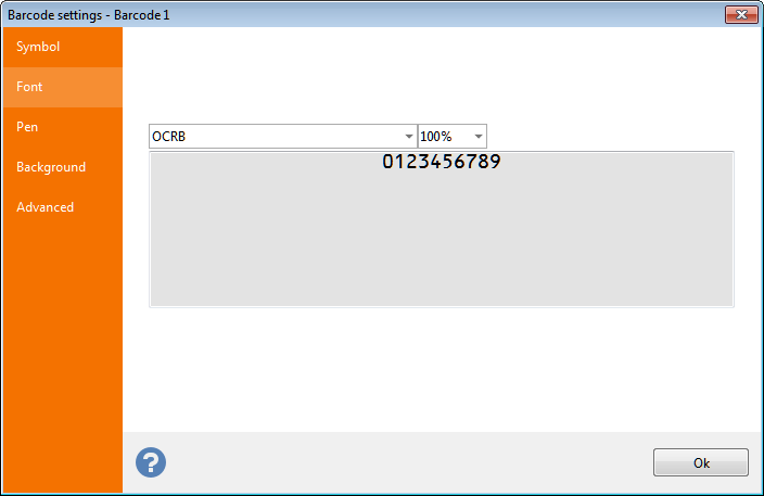Symbol: this tab enables you to select the type of barcode you want to display.