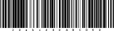 | EAN-128 encoding the text 20abcd40ABCD60 (no FNC1 separators) |