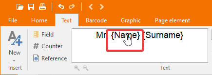 By selecting a field name, a new instance will be added to the text in the form of an active link.