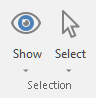The Select button of the Selection group of the Home tab gives you to access a series of sub-menus that list all elements belonging to the current job.