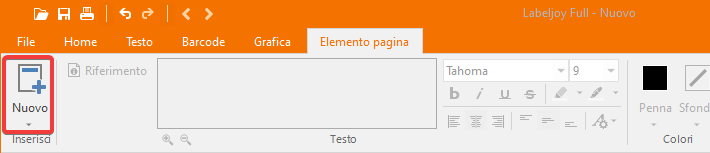 Per aggiungere un nuovo elemento pagina, è necessario avviare la modalità di inserimento dell'elemento pagina cliccando sul pulsante corrispondente nella scheda Elemento pagina e utilizzando il mouse per disegnare la nuova area di testo su un'etichetta.