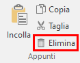 • Usare il pulsante Elimina: individuare il pulsante Elimina sulla barra multifunzione nel gruppo Appunti. Ora cliccare il pulsante Elimina.