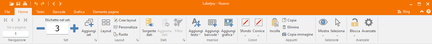 Dalla versione 6, i menu di Labeljoy saranno mostrati utilizzando una barra multifunzione che riprende lo stile di Microsoft Office.