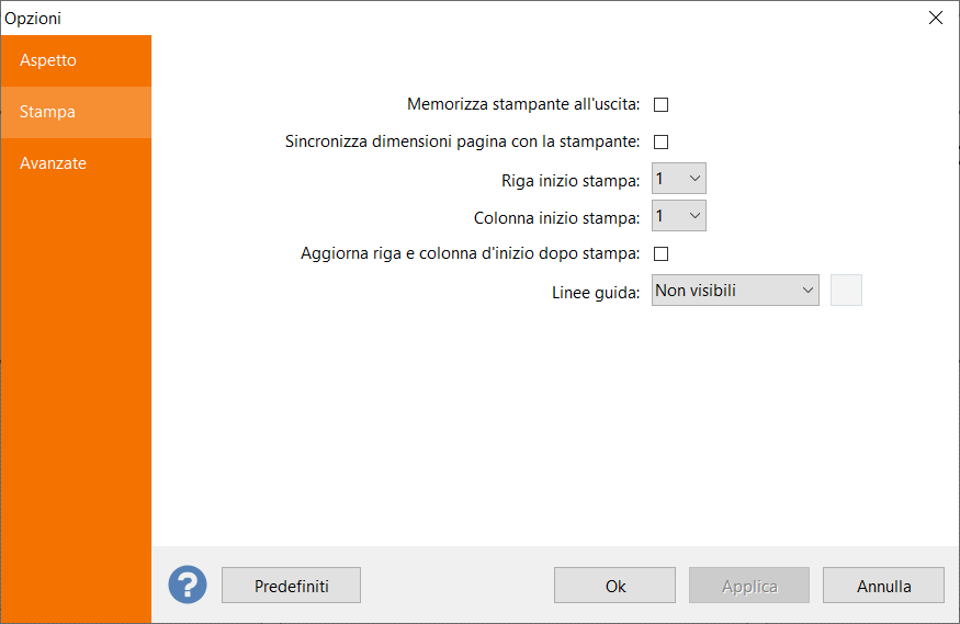 - Colonna inizio stampa: definizione della colonna dell'etichetta in cui deve iniziare la stampa.