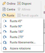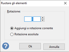 In quest'ultimo caso, se si seleziona la voce di menu Ruota liberamente…, viene mostrato un modulo speciale, con il quale è possibile definire una rotazione specifica per tutti gli oggetti selezionati: