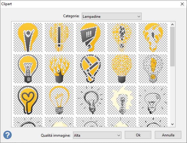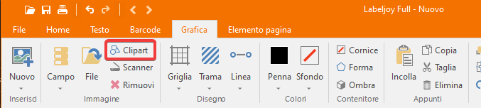 La biblioteca di Clipart è disponibile nelle versioni Full, Basic e in modalità dimostrativa.