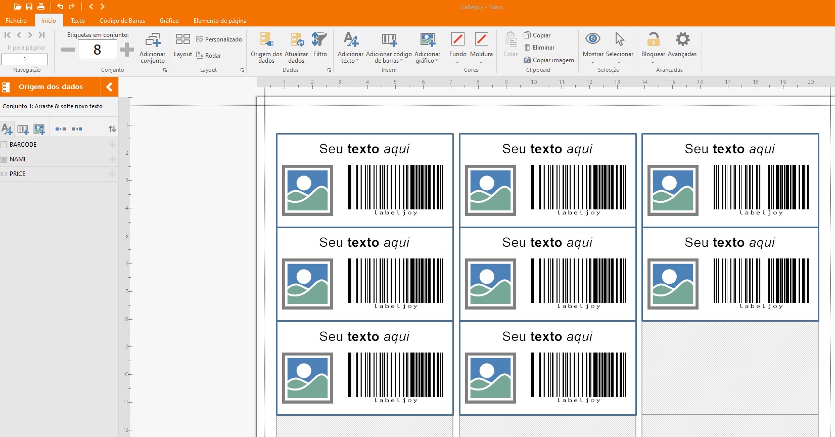Quando o assistente terminar, voltará ao ecrã principal do software Labeljoy e verá que o número de etiquetas criadas é igual ao número de linhas na folha do Excel.