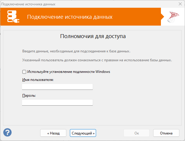 Для соединений Microsoft SQL Server можно также активировать проверку подлинности Windows, что позволяет пользователю подключаться к серверу с использованием учетных данных Windows.