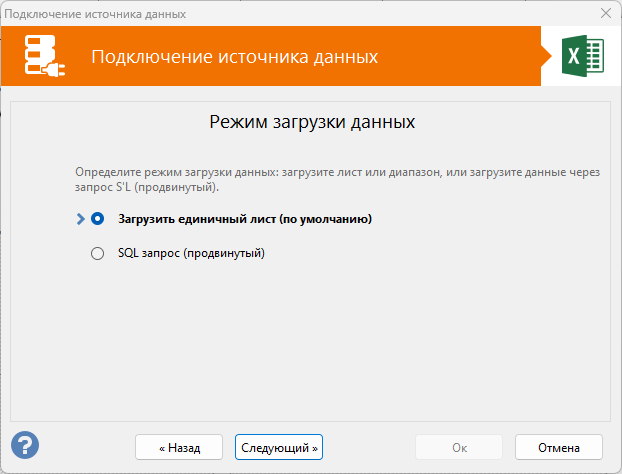 выбор режима загрузки данных