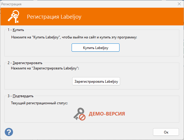 Пока не будет предоставлен действительный код активации, Labeljoy будет работать в пробном режиме.