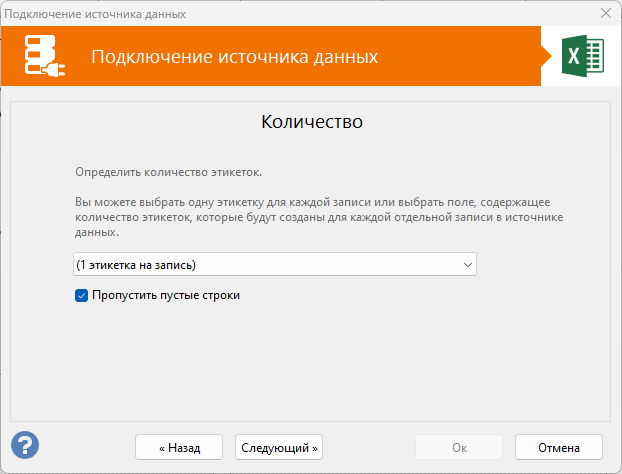 Или вы можете выбрать поле из списка, которое содержит информацию о количестве меток, которые будут созданы для каждой отдельной записи.