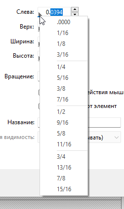 При выборе одного из этих пунктов меню дробная часть размера, выраженная в текстовом поле, будет изменена на десятичное значение, соответствующее выбранной 16-й дроби.
