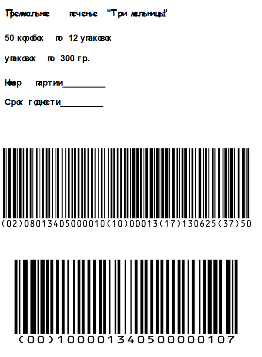 • GTIN AI (02): Идентифицирует каждую отдельную коробку печенья.