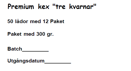 - Batchnummer AI (10): Anger vilken batch kakorna kommer från.