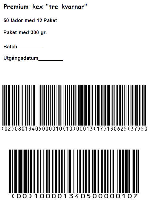 - GTIN AI (02): Identifierar varje enskild låda med kakor.